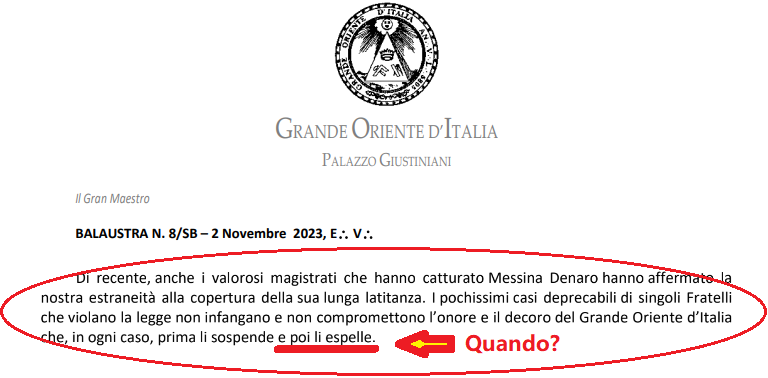 Il “venerabile fratello” in questione avrebbe dovuto essere espulso dal Grande Oriente d’Italia, come dichiarato dallo stesso Gran Maestro Stefano Bisi nel corso di un’intervista rilasciata al giornalista Pino Nano il 26 gennaio 2023, in riferimento al caso di un altro “fratello” coinvolto in una operazione antimafia: il campobellese Alfonso Tumbarello (medico di Matteo Messina Denaro). Ma perché questo non è avvenuto?
